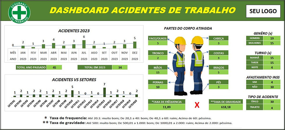 DASHBOARD EM EXCEL - ACIDENTES DE TRABALHO